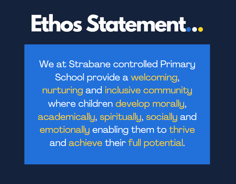 At Strabane Primary School and Nursery, we are committed to providing a safe, secure, and nurturing environment where every child can thrive. Our ethos is built on creating a welcoming and inclusive community where children develop morally, academically, spiritually, socially, and emotionally—enabling them to achieve their full potential.